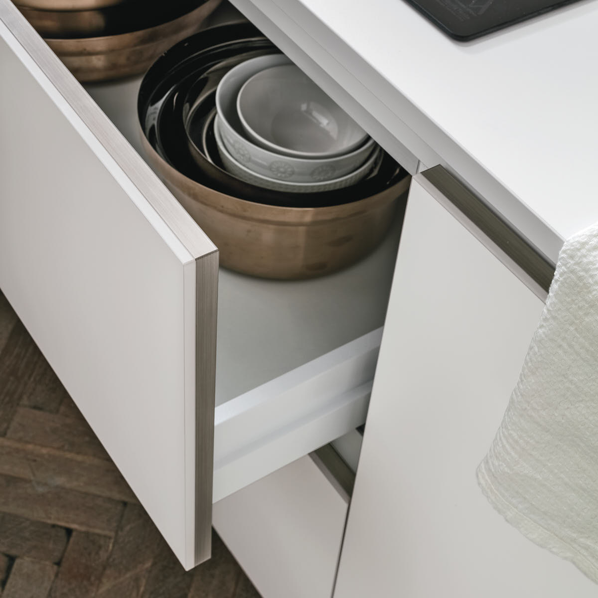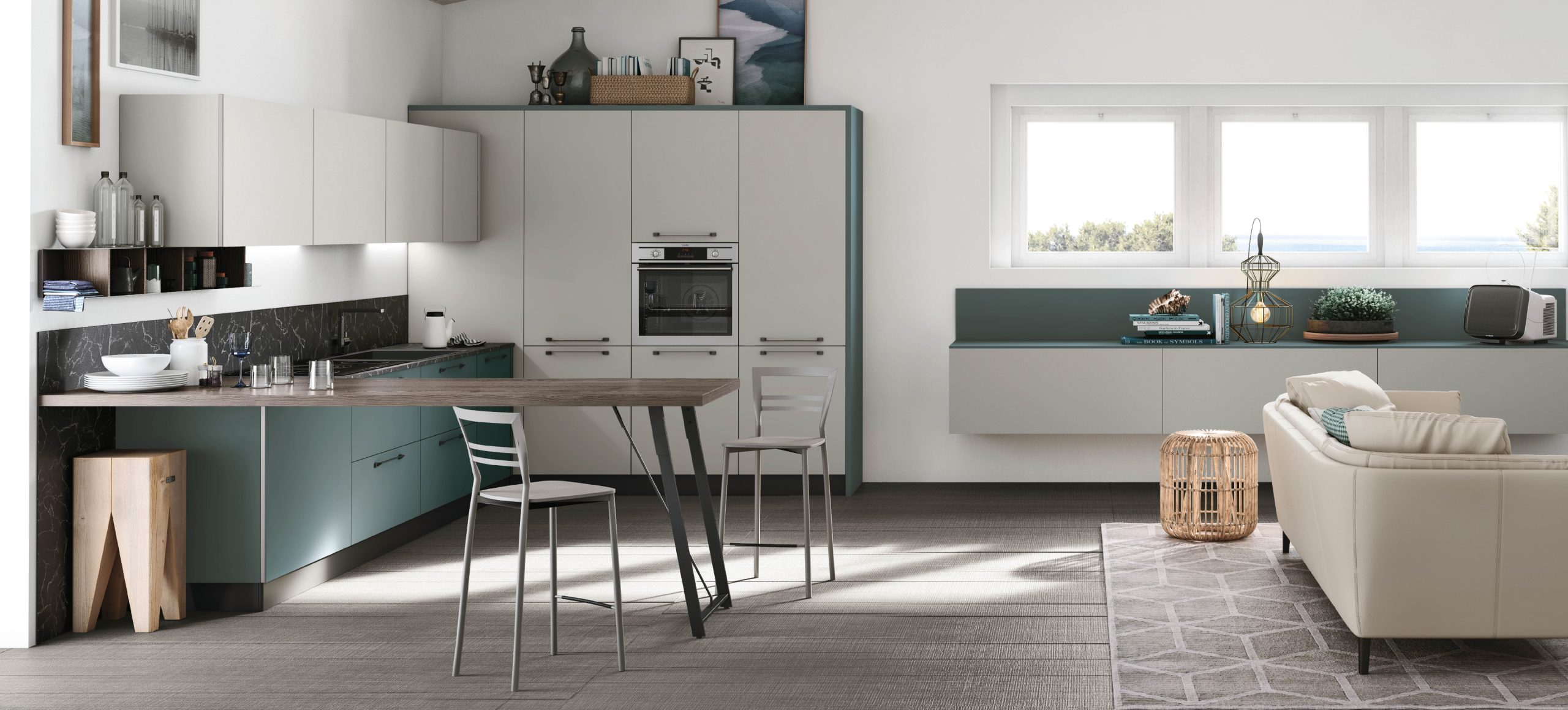 Alevè – это кухня для молодежи в уравновешенной цветовой палитре со стилистическими оттенками в духе урбан и гламур.